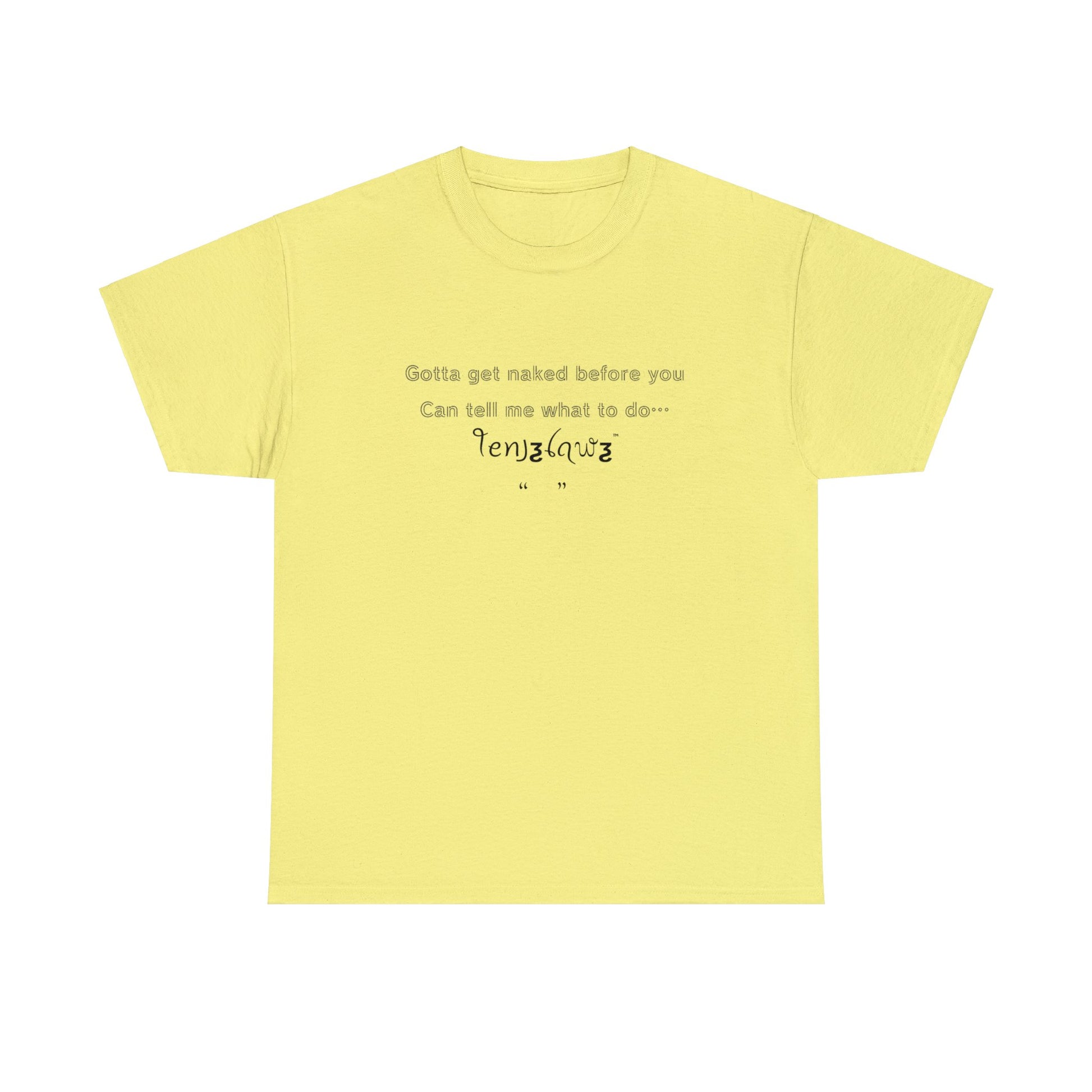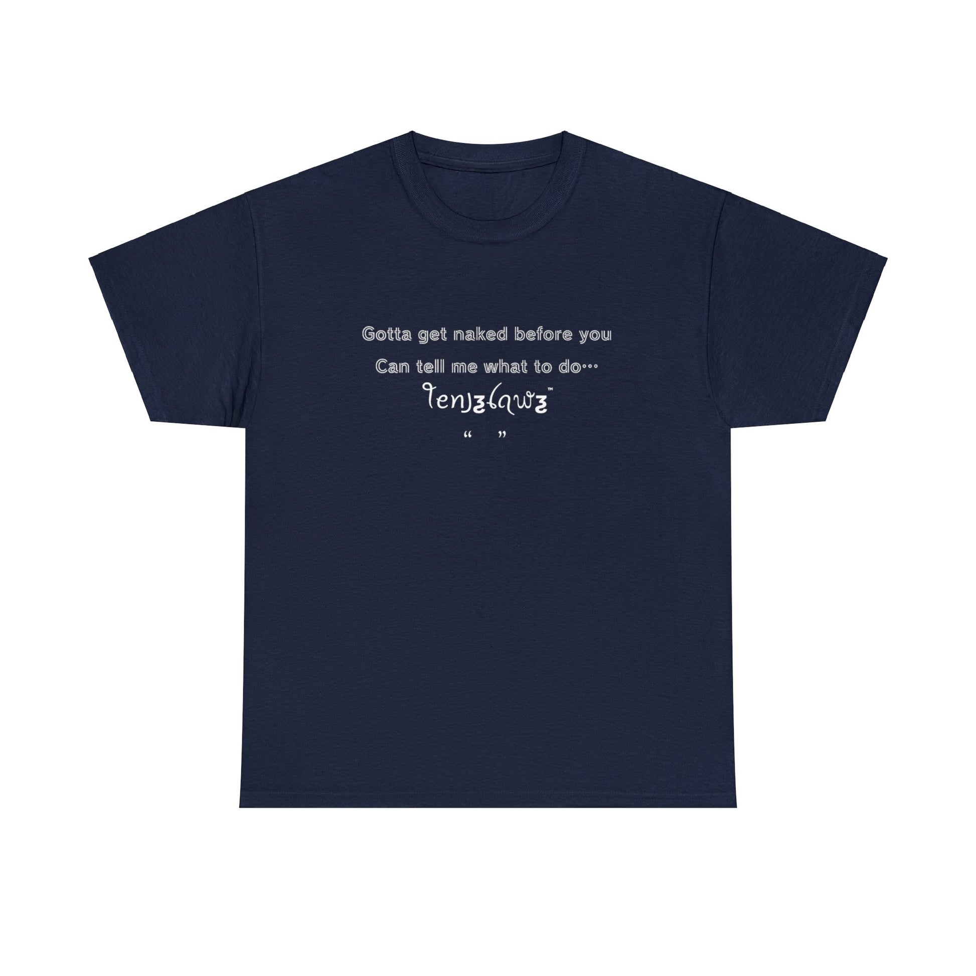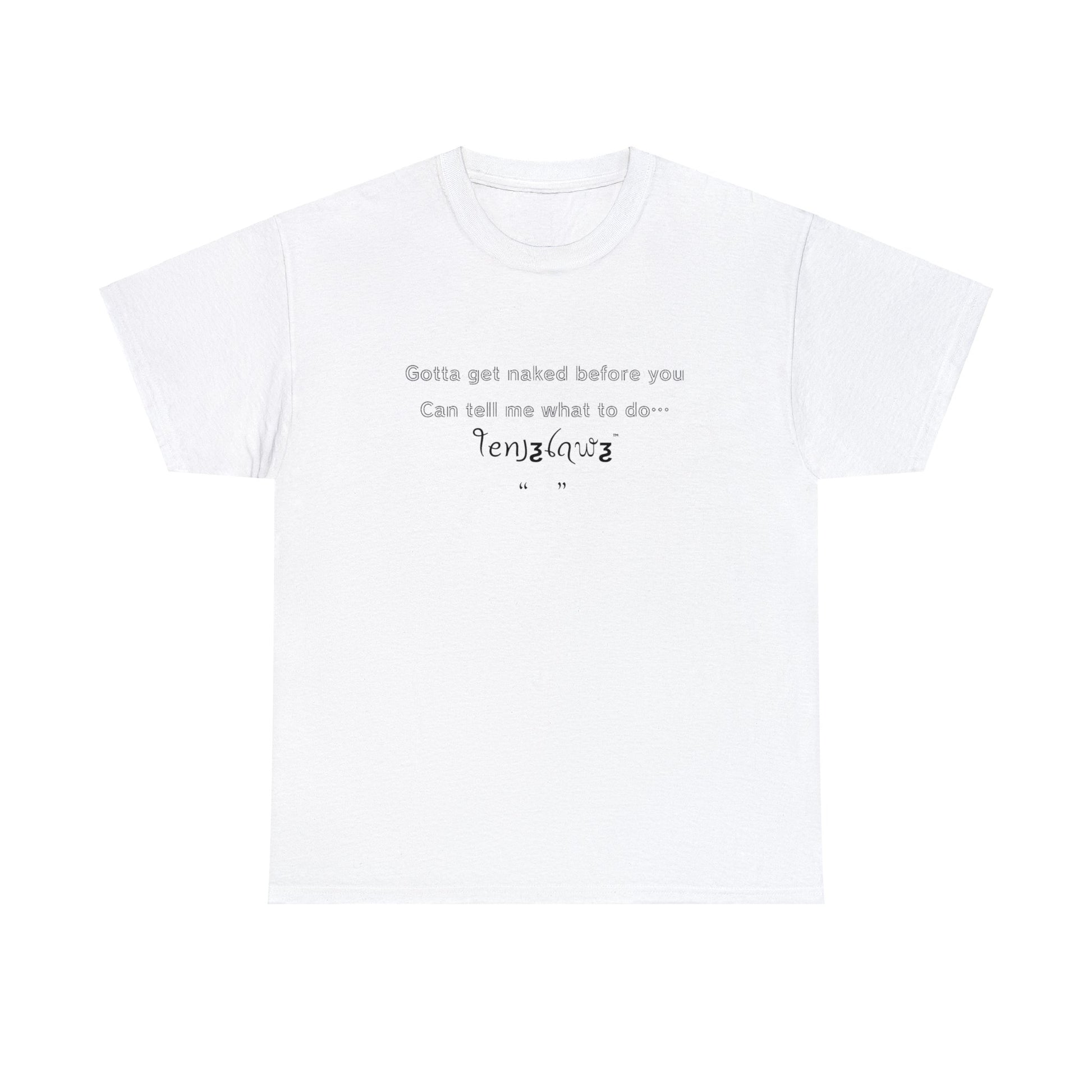 Bro, one of us gotta do it. Can’t be fully clothed; giving and taking orders.